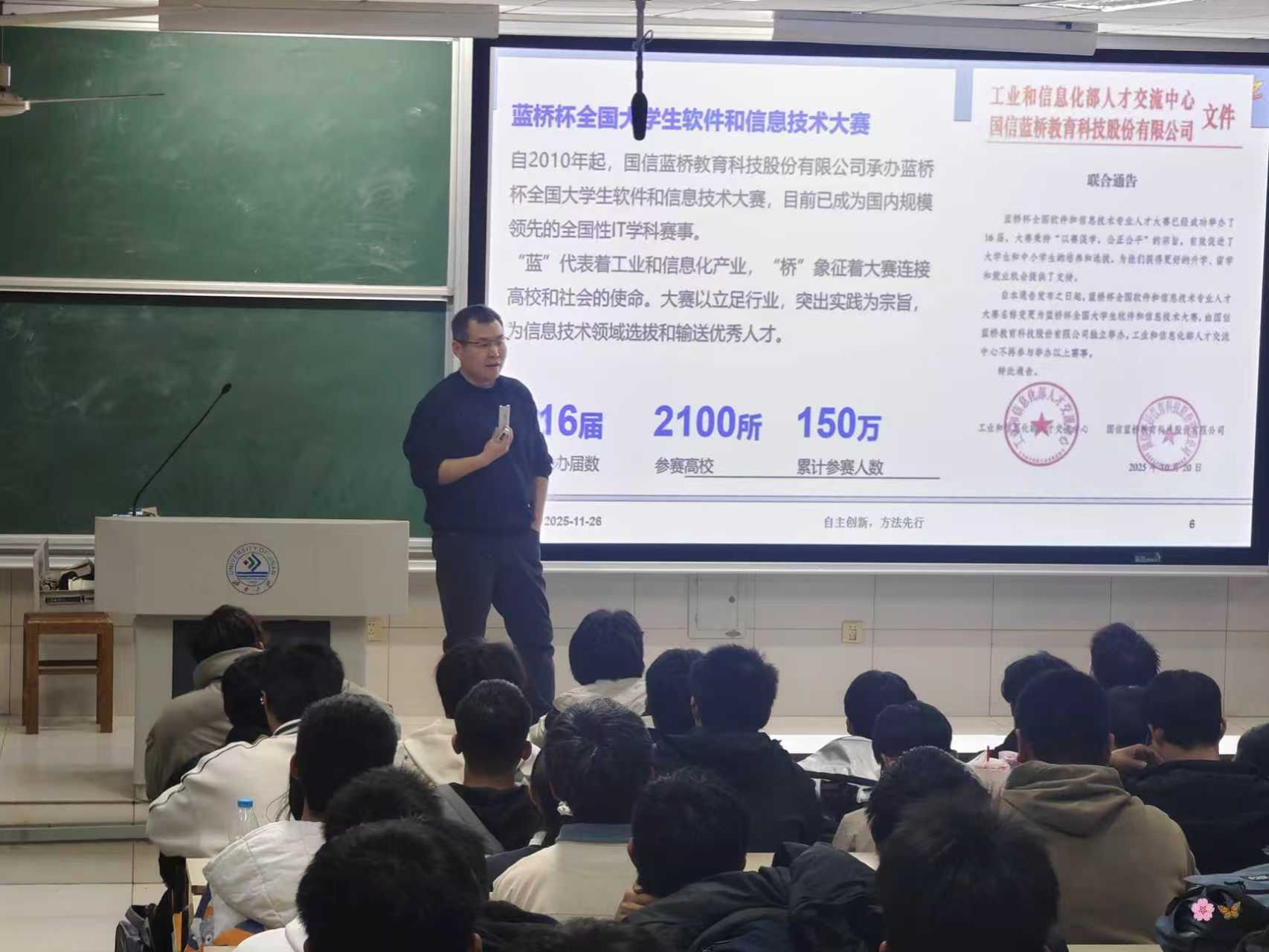 科创不仅是课堂学习的延伸,更是将书本知识转化为实际问题解决方案的“练兵场”。本次科创赛事宣讲会的举办,不仅为学生搭建了科创赛事与实践能力对接的桥梁,让“蓝桥杯”等科创赛事从“陌生概念”变为“可参与、可突破的目标”;更以名师、朋辈经验分享为切入点,激发了学生将理论知识转化为创新成果的动力,为yl永利集团304am后续培育科创人才、提升学科实践氛围奠定了坚实基础。